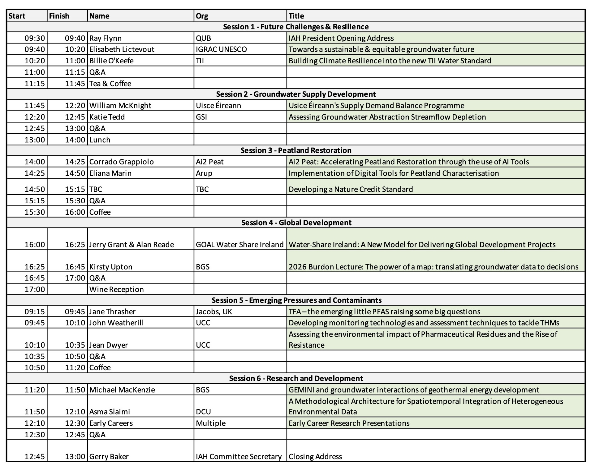 The IAH (Irish Group) Groundwater Conference can be expected to benefit hydrogeologists, engineers, local authorities, consultants, planners, environmental scientists, public health officials, professionals and practitioners from a variety of sectors involved with groundwater.