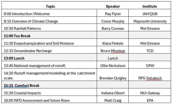 IAH (Irish Group) CPD Course: Groundwater, Hydrology and Climate Change